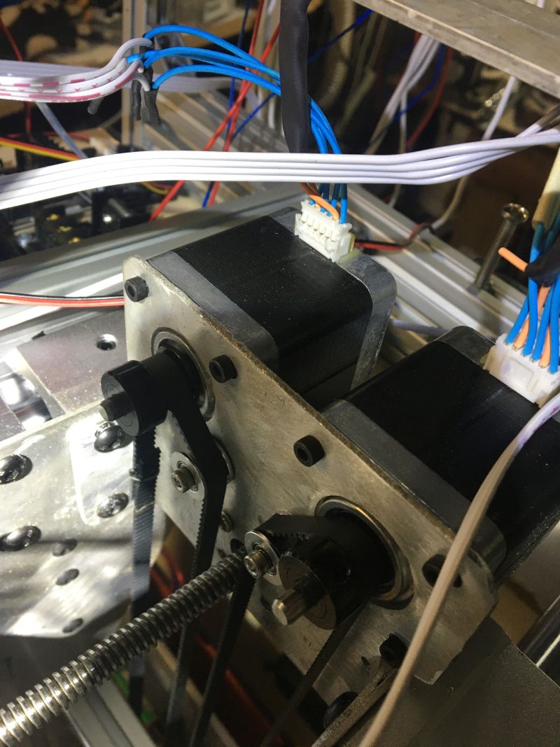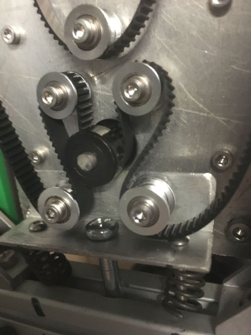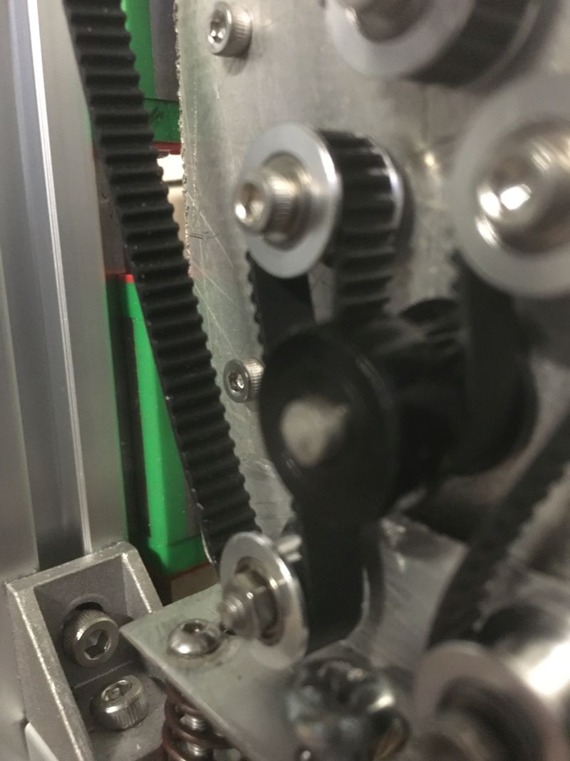 This is the hot end at xyz home Next we have the belt run and pullies. The plan was to move the belt splice at the end of the outboard run hoping to have enough travel to reach the other extreme, this I dont know yet