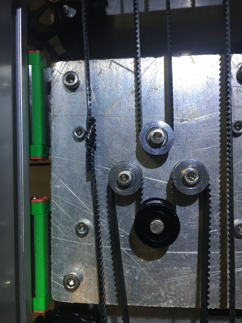 I encountered a problem with the pully levels. With the table at the extreme the pullies all get real close, problem is the y carrier pullies are not at the same level and the belts are not straight.