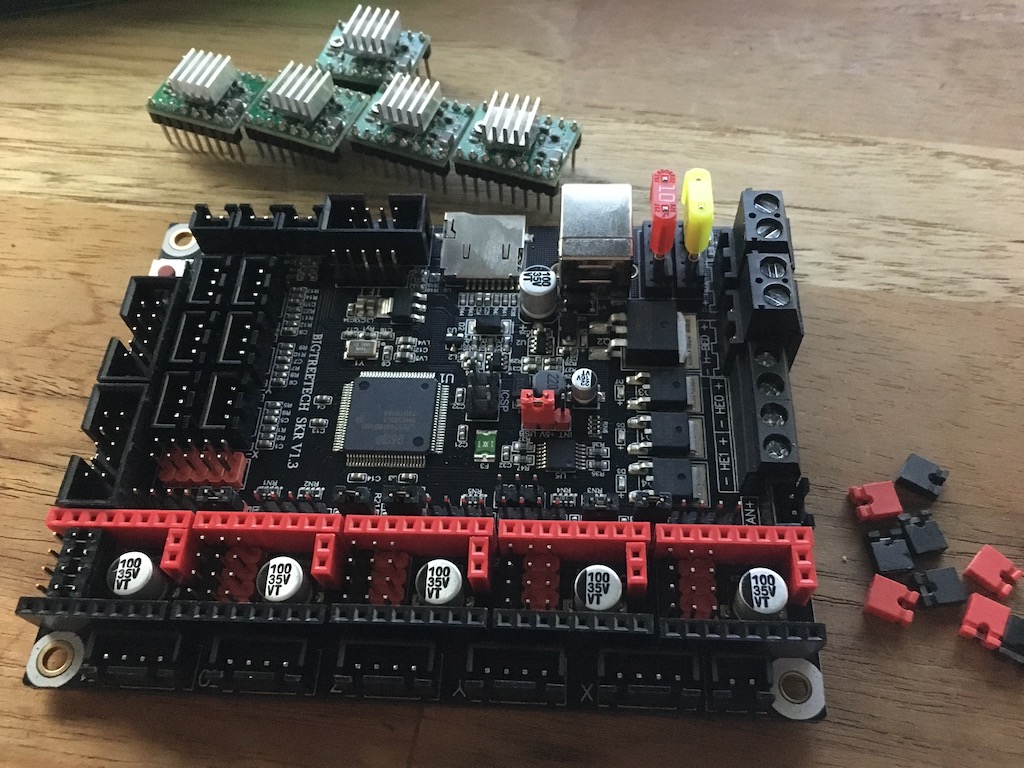 After trashing the china controllers for my tevo tarantula and examining the option to drive this printer, and what I would have to spend I have decided to try to configure a SKR ver1.3. yes china crap again but I had bought this a while back from ebay cause I had a credit on my account and it came with a display. So needless to say this setup was not a plug and play, so I have had to learn about the driver options, the kit I bought was supposed to have TCM2208 drivers , of course it has been 5 months and it's to late to complain but ebay strikes again. the board has a4988